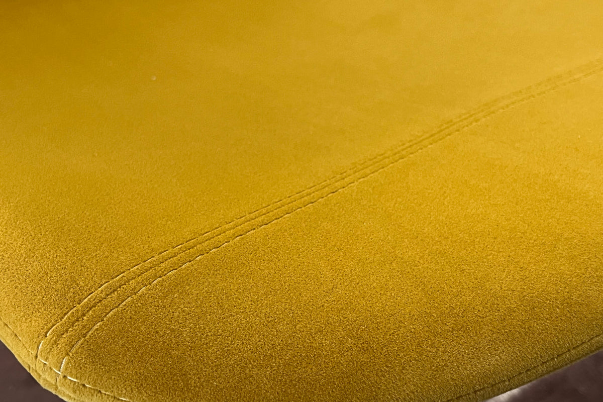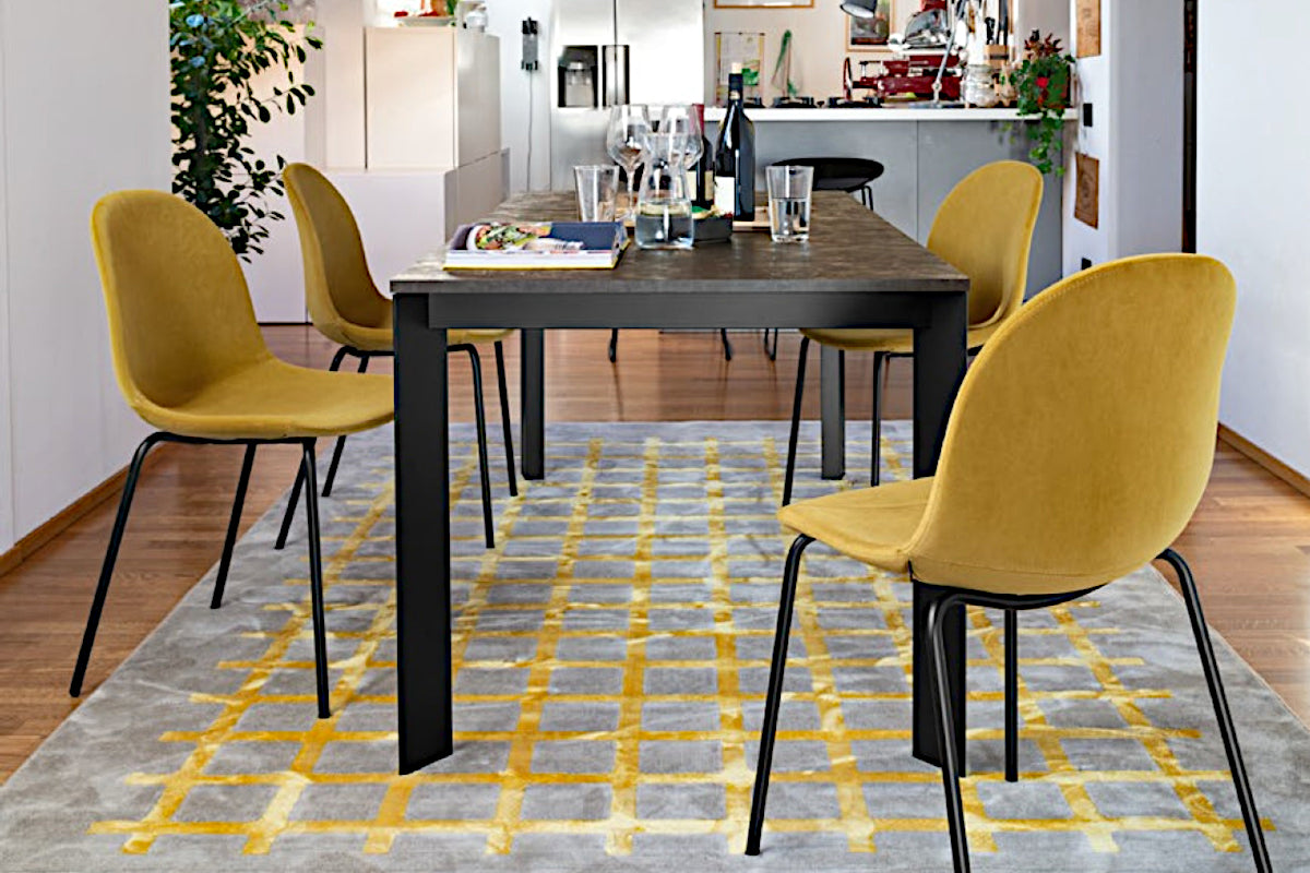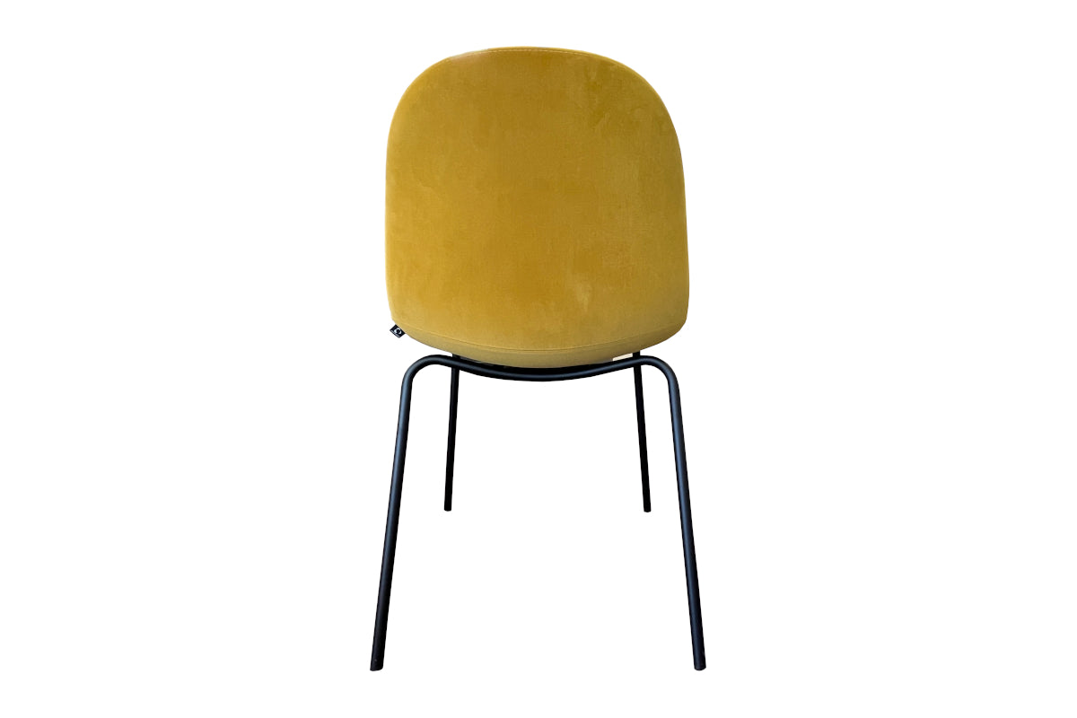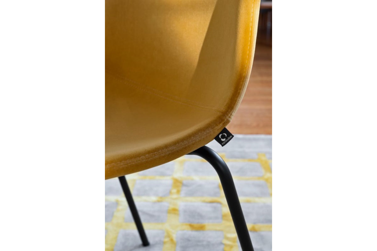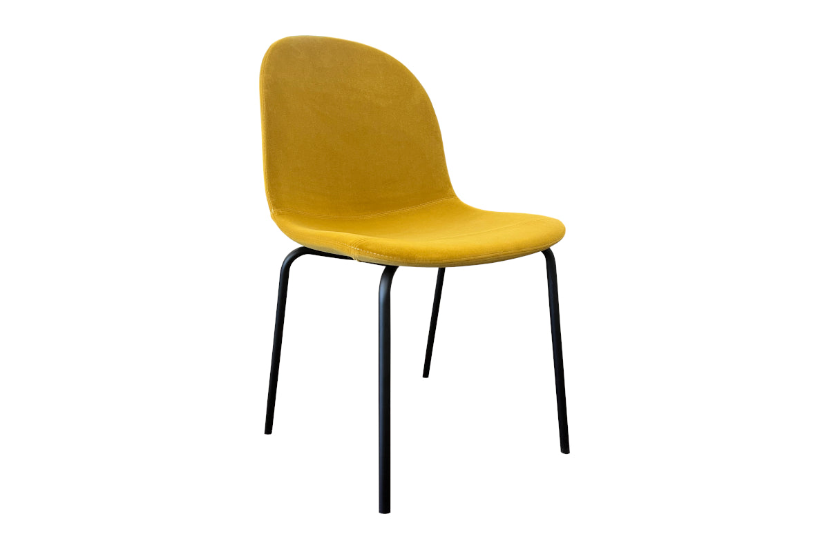 The simple, sinuous design of the Academy dining chair suits any environment and situation. The chair features lemon yellow fabric with a 4-leg, matte black tubular metal base, making it suitable for any aesthetic and functional need.