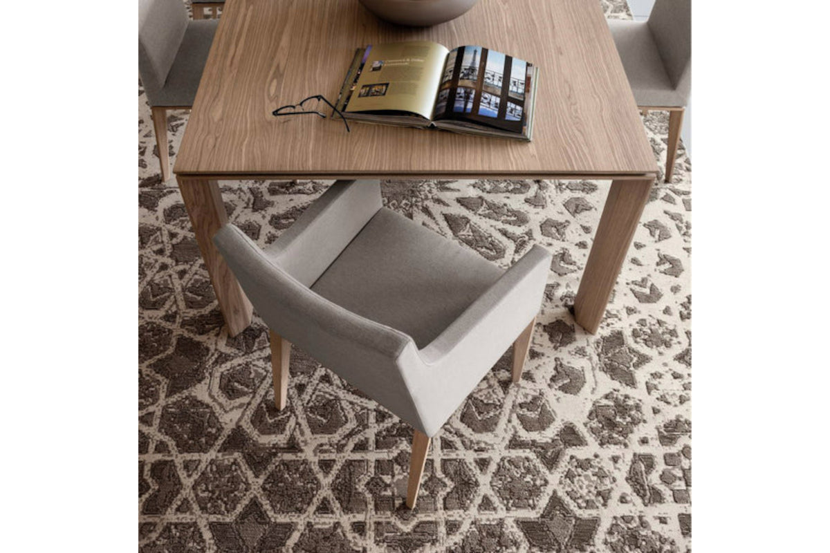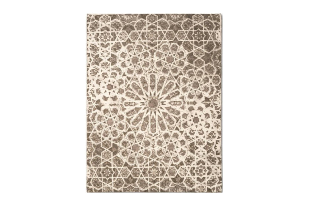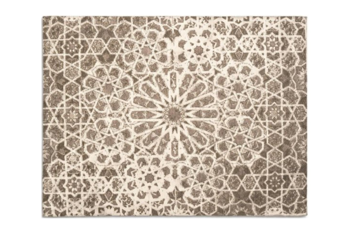 ARABIA is the reduced-scale reproduction of a fragment of the largest rug in the world. It was commenced in 1903 by order of the Sultan of Persia and was completed only in 2009. The geometric pattern echoes the typical arabesque shapes in a gear-like interplay of stars and floral motifs. The rug composition is a blend of cotton, acrylic chenille and polyester.