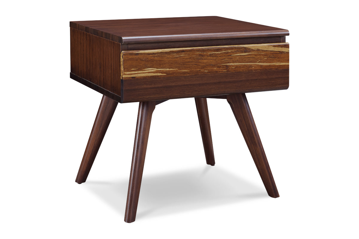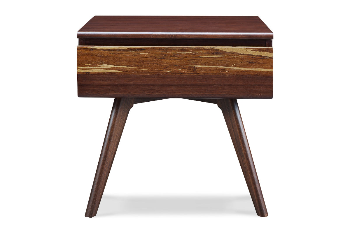 Expertly crafted in earth friendly solid bamboo, the Azara nightstand features sleek mid-century styling, clean lines and modern angled tapered legs. Beautifully finished on all four sides, the Azara’s smooth design shows off the beautiful color and grain of the solid bamboo material. The Azara nightstand’s storage drawer is faced in solid exotic Tiger bamboo. The Azara bedroom chests all feature solid bamboo drawer boxes, finished inside and out, and constructed using English dovetail joinery with soft closing, under mount drawer glides.