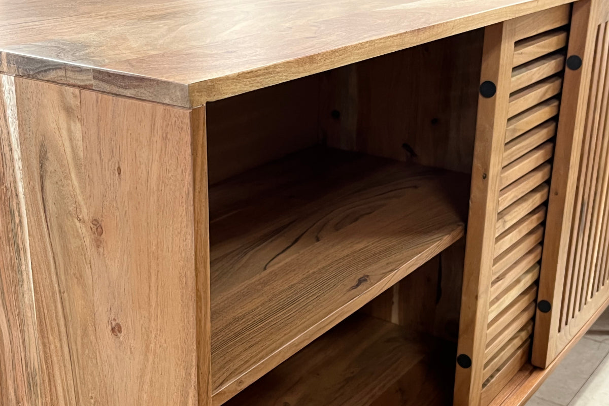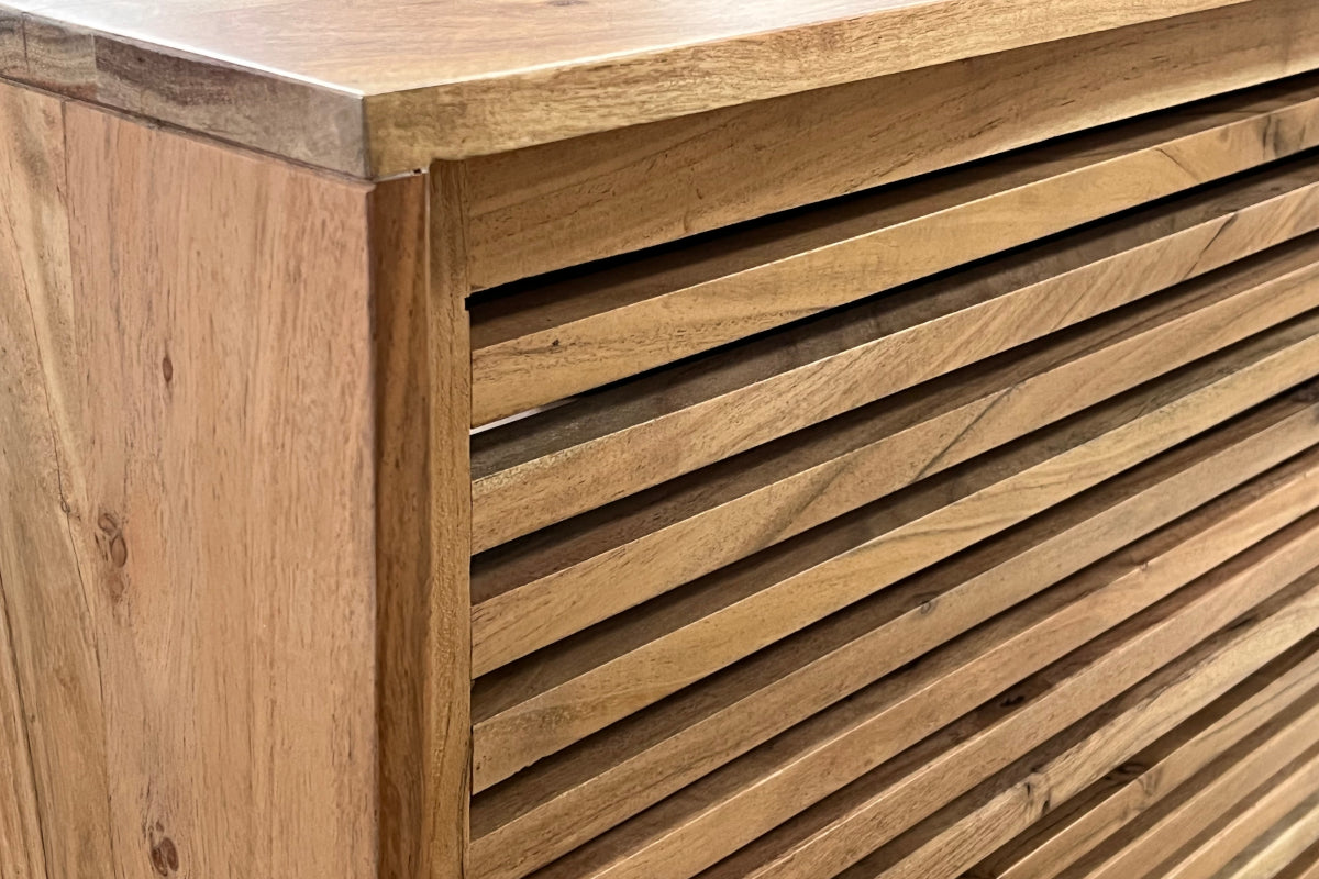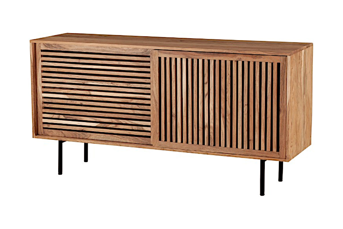 The Bauhaus Collection features elegant horizontal and vertical architectural slats in natural acacia with contrasting black legs. This elegant sideboard is the perfect place for storing your treasures.