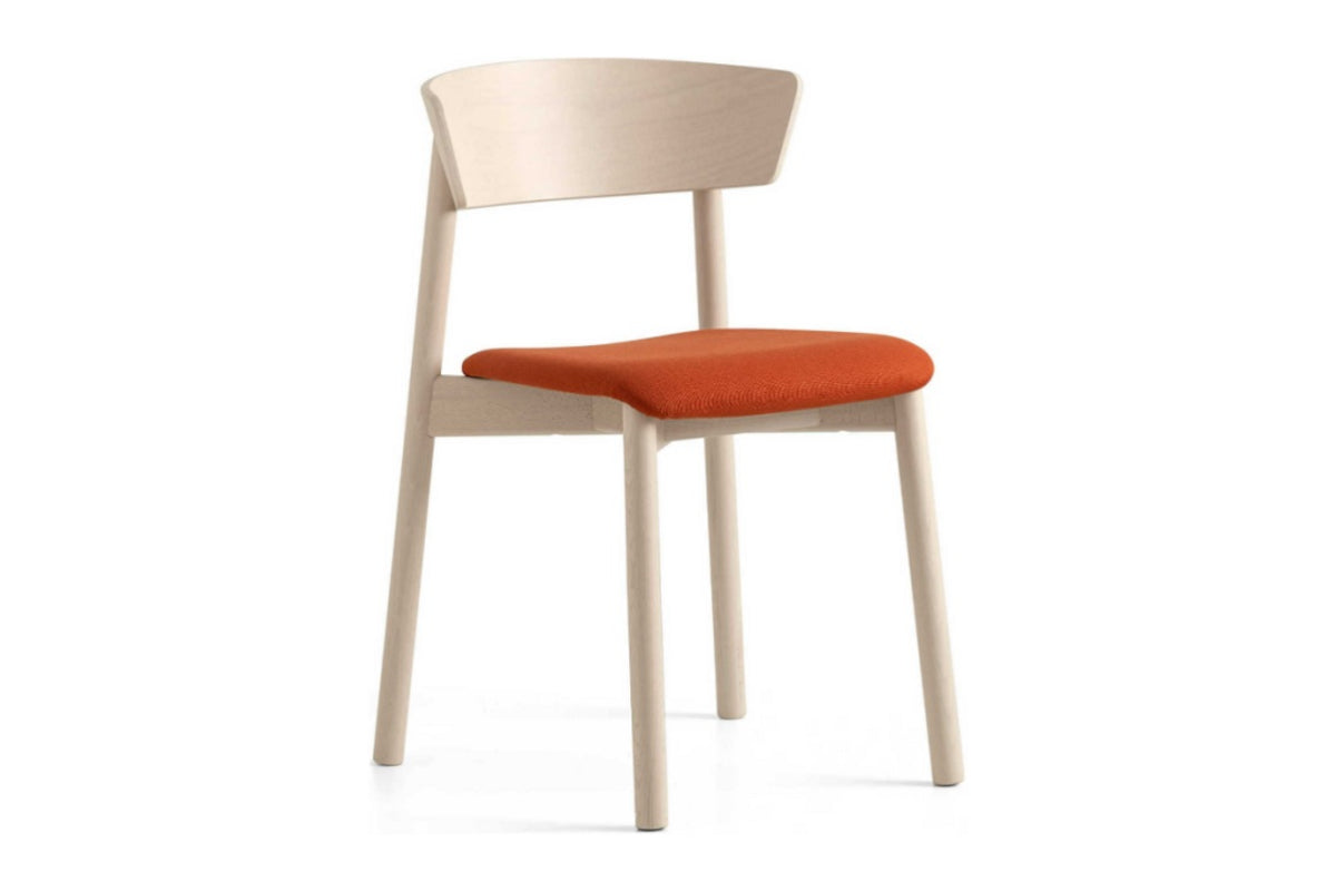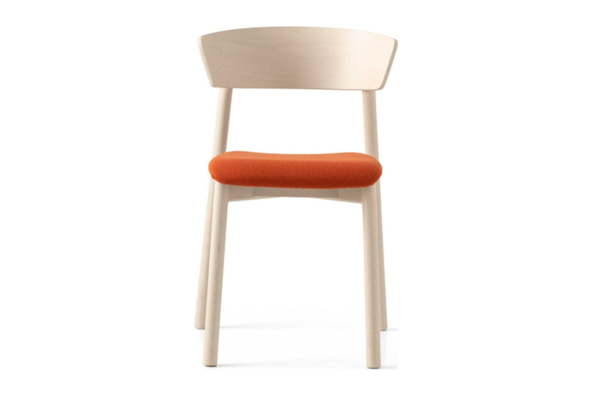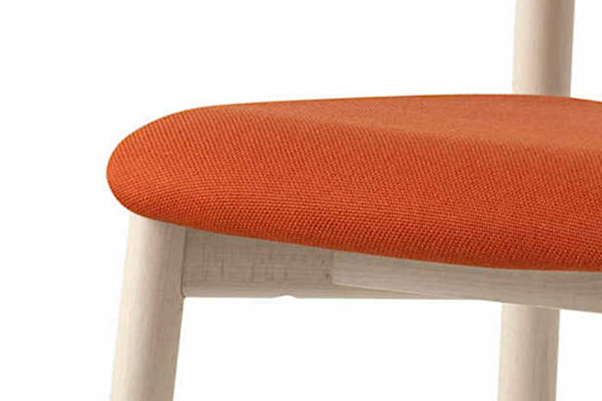 The Clelia dining chair combines bleached birch finish wood with saffron yellow fabric to create stylish and comfortable chairs for any dining setting.