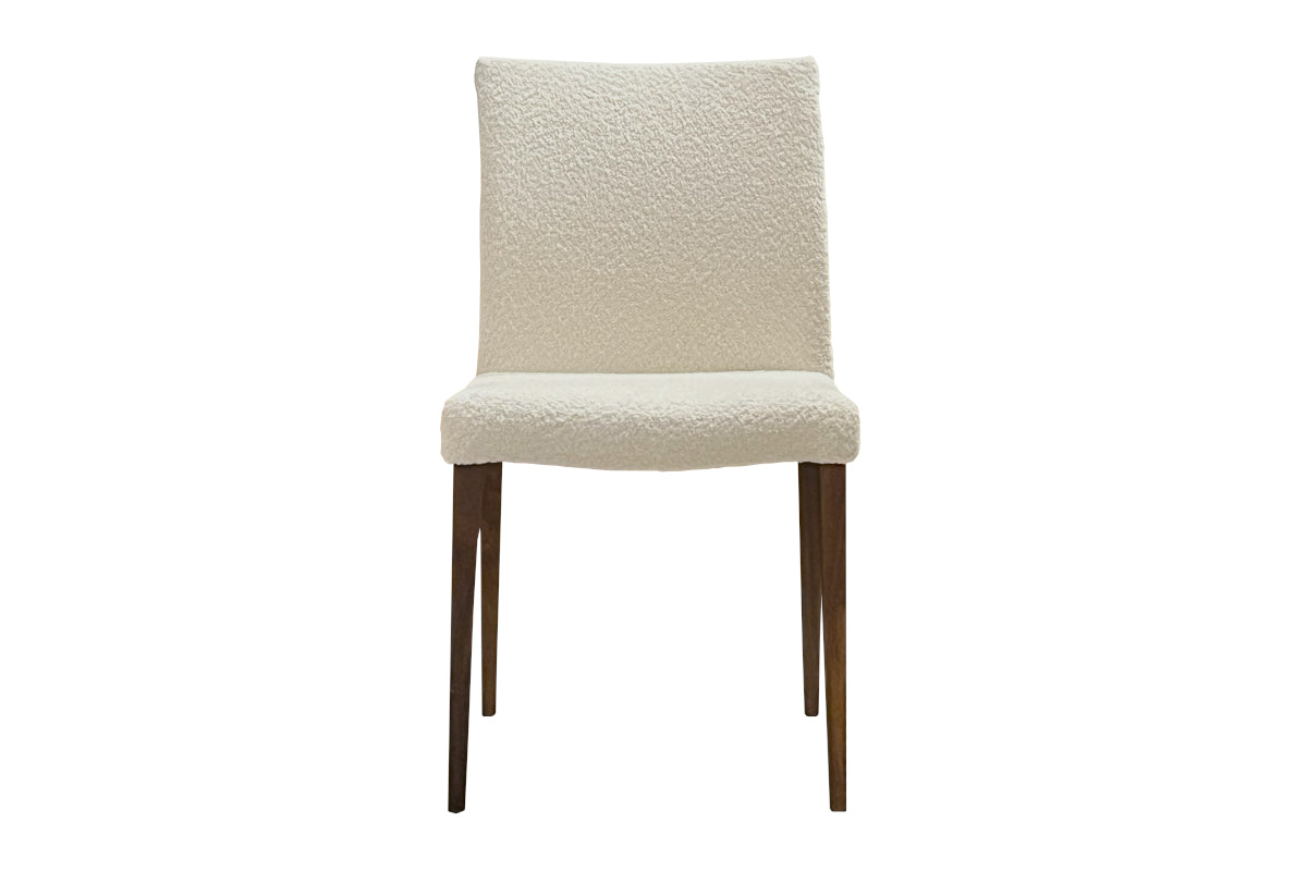 Delight in the subtle beauty of the Dali low back dining chair from Mobican. This lovingly crafted chair features cream fabric with smoked walnut and combines a wood base with a foam wrapped plywood seat to create a look of timeless sophistication. The ergonomic shape provides great dining comfort while the elegant silhouette creates a stunning look. Each piece is carefully sanded and hand-stained by artisans to reach its full potential. Add to your favorite dining table or cozy breakfast nook for a simple, yet sophisticated touch.