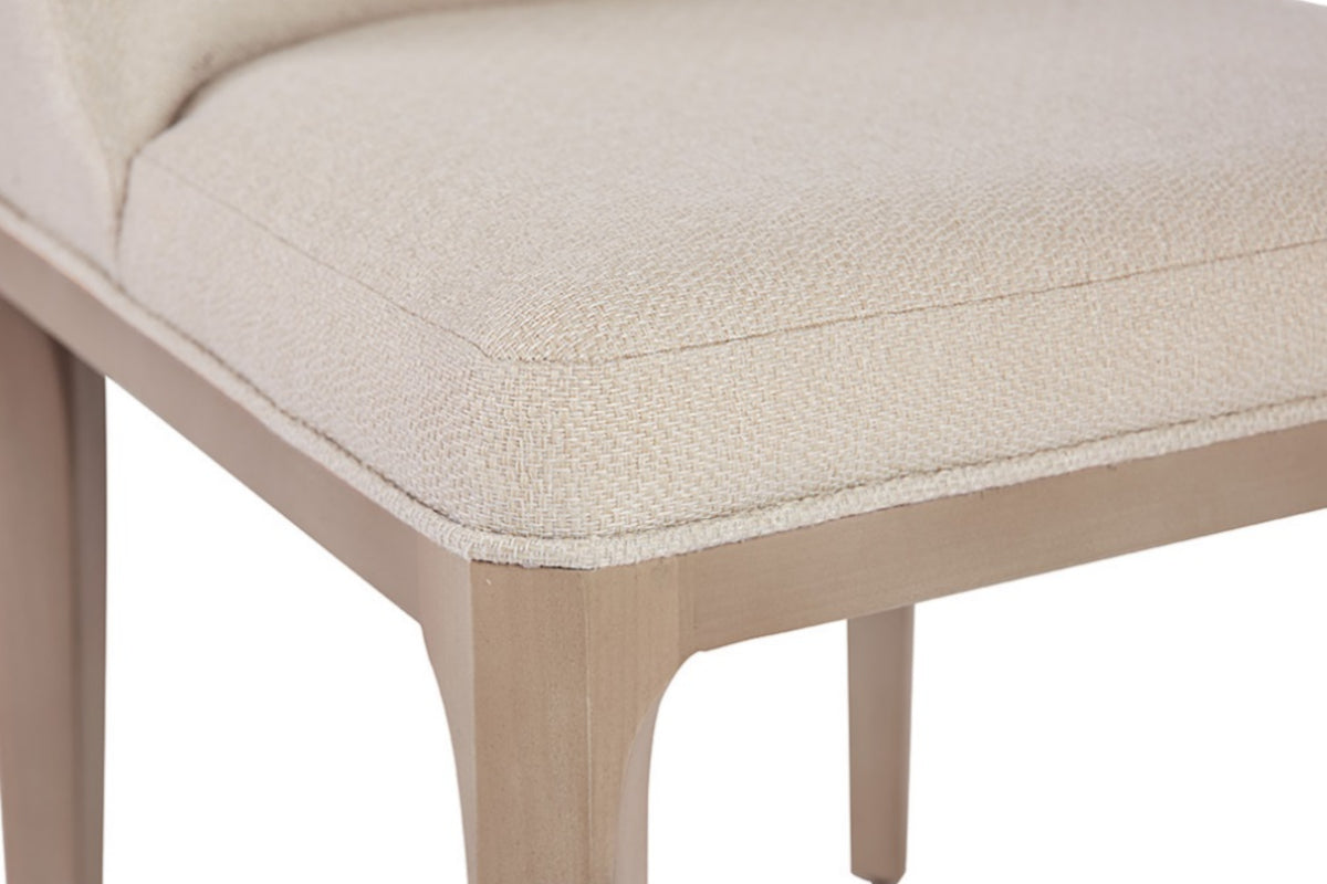With a timeless design, this dining chair boasts a stunning mid-century appeal. Stocked in our beautiful mainz cream fabric and completed with solid poplar wood legs in a light oak finish. As wood is an organic, porous material, these pieces will contain natural variation of texture and may also exhibit fine indentations and cracks. Wood pieces will also display a disparity of color and grain, and visible knots and burls that add to the character of each piece.
