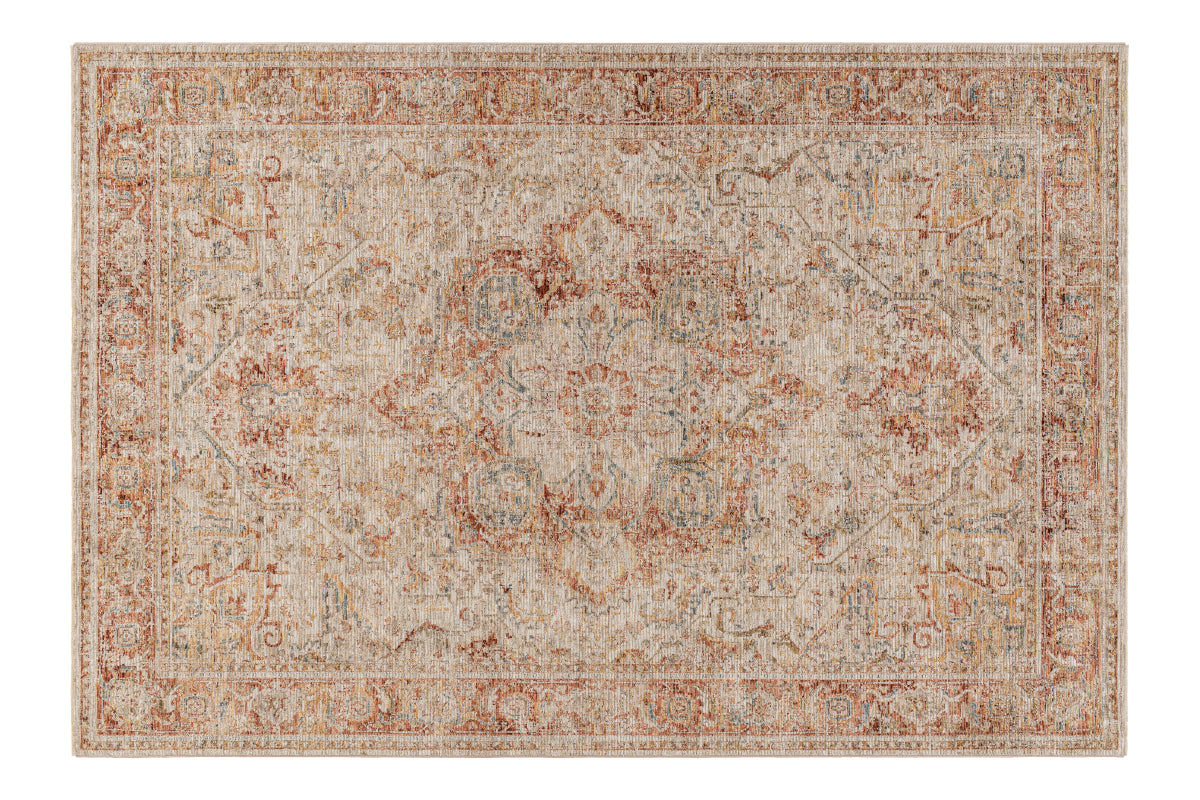 The meticulously woven construction of the Naila Rug boasts durability and will provide natural charm into your decor space. Made with Polyester in Turkey, and has a medium pile. Woven in approximate 1/3 inch thickness, the plush pile of the Naila rug adds a level of comfort to any hard surface floor while adding beauty to the room.
