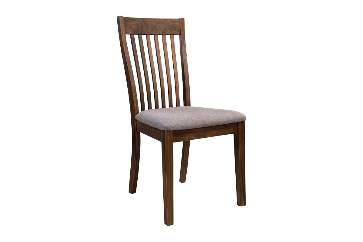 The Napa Dining Chair is crafted from solid walnut with a gray fabric seat.