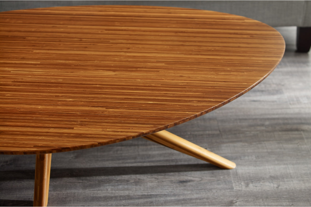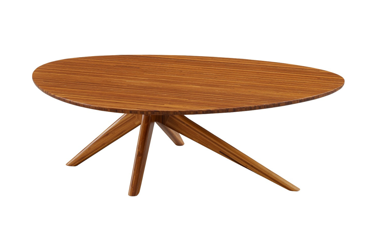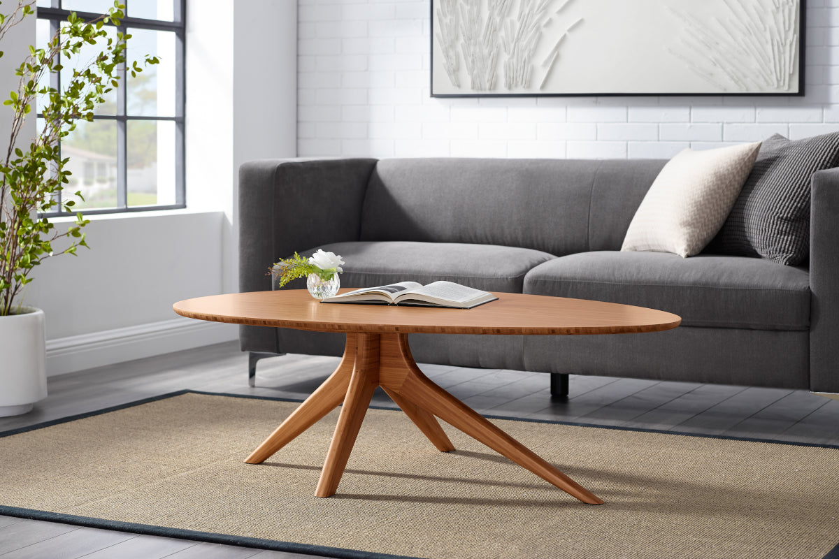 Inspired by Scandinavian modernism, the sculptural quality of the Rosemary coffee table brings the simple elegance of Mid-Century design into the modern home. The Rosemary table’s shapely curves combine style and balance with a unique oval shaped tabletop on a sweeping asymmetrical base. Rosemary’s clean lines showcase the natural beauty and vibrant colors found in Greenington’s new Amber bamboo.